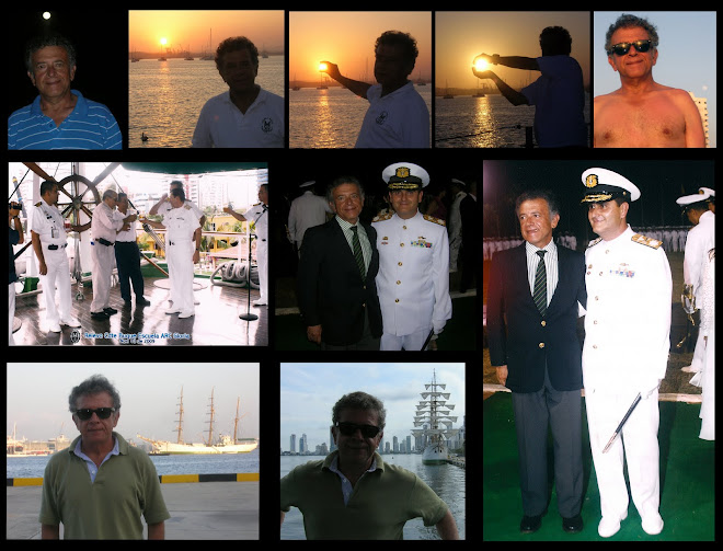 Luego de un almuerzo de compañeros, en los comedores del la Cámara de Oficiales de la Base Naval, salimos a visitar los buques: en primer término la fragata "misilera" "Almirante Padilla", luego el submarino "Pijao". Me ahorré de llevar un pañuelo blanco para pasar revista, no hubiera tenido dónde ponerlo. ¡Todo lucía impecable! Esos buques reflejan la estirpe de los hombres que los tripulan y nos hace sentir orgullosos de lo que somos y de lo que se puede hacer con recursos, que si no son muy abundantes, están manejados con idoneidad y responsabilidad. El plato fuerte del día fue el coctail, ofrecido por los almirantes del 42, en el velero "Gloria".